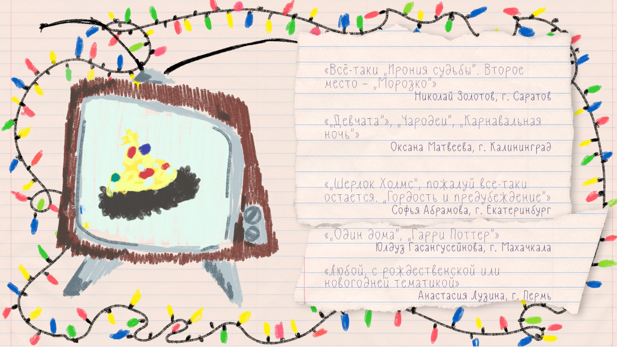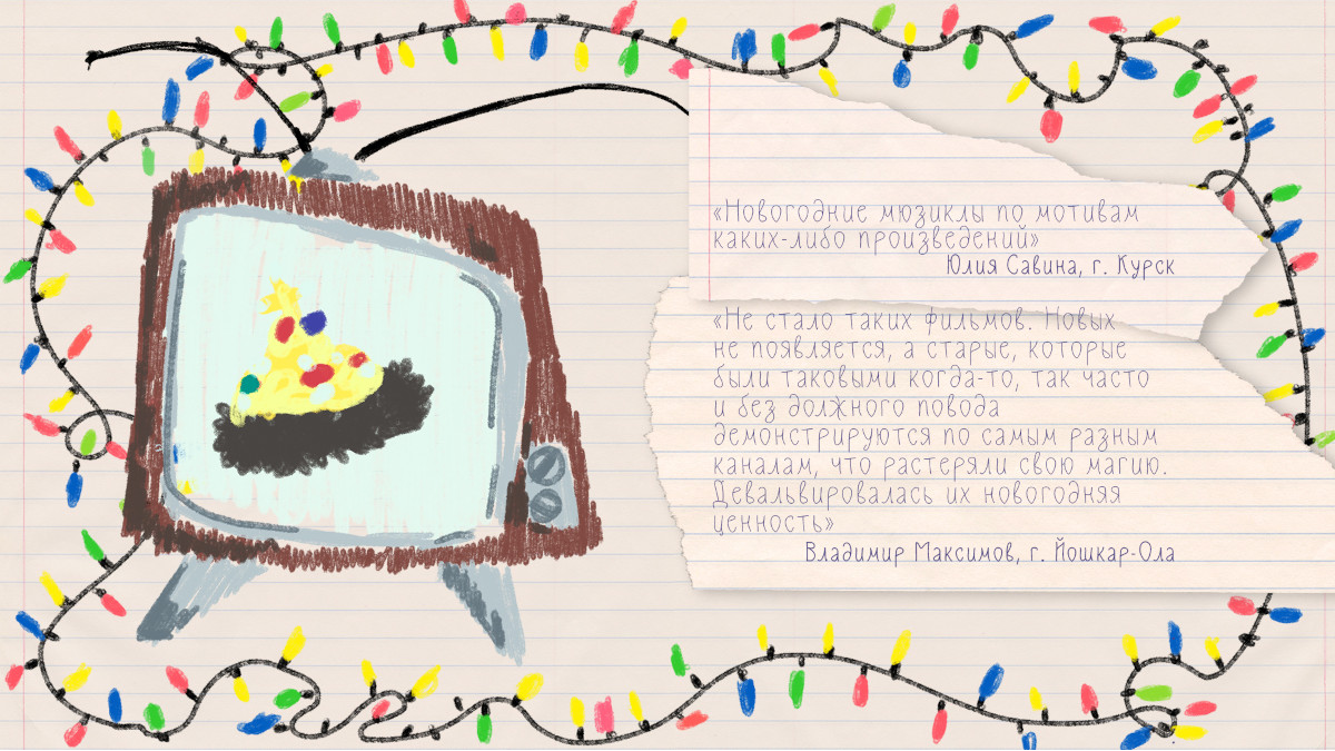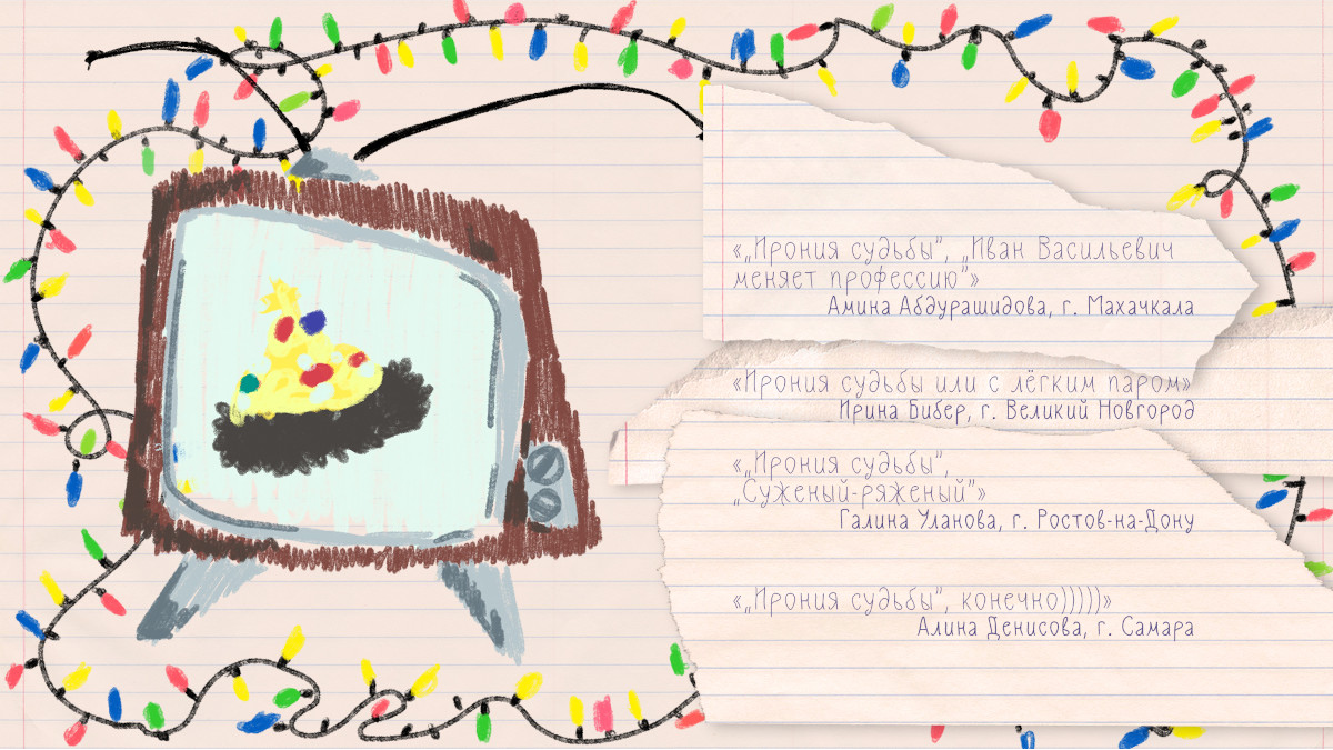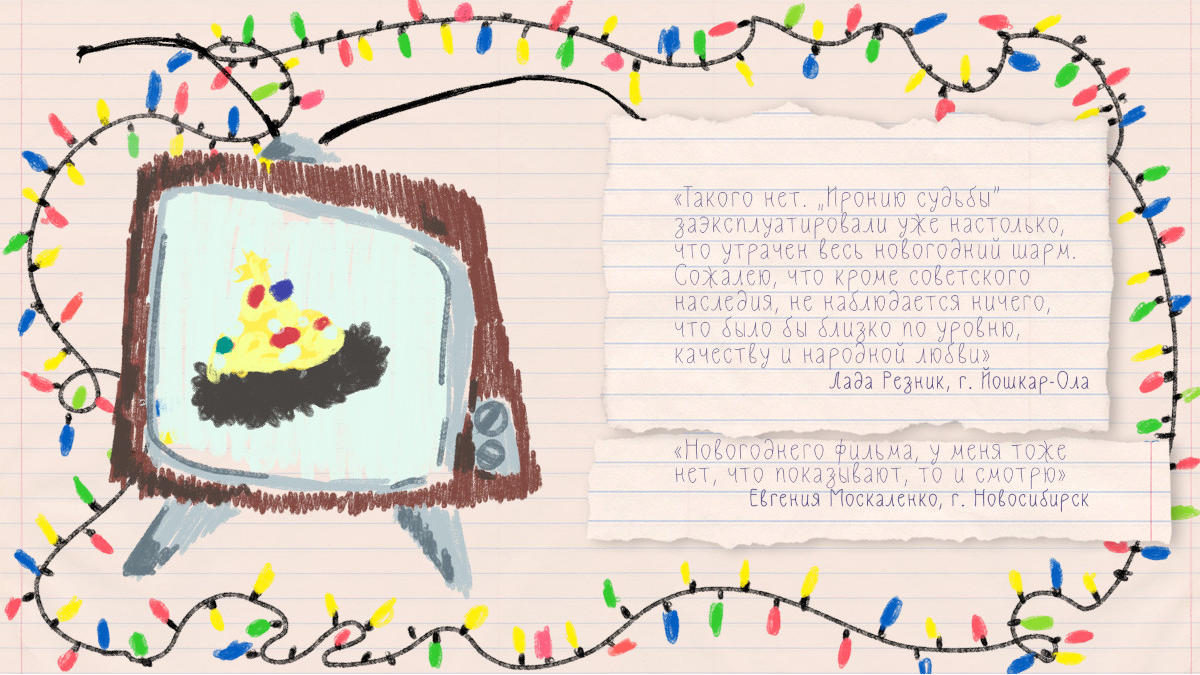 Для интервьюеров Ирины Бибер (г. Великий Новгород), Галины Улановой (г. Ростов-на-Дону) и Алины Денисовой (г. Самара) Новый год не наступит без «Иронии судьбы». Интервьюер Николай Золотов (г. Саратов) ставит этот фильм на первое место, но сразу за ним — «Морозко», а интервьюер Амина Абдурашидова (г. Махачкала) кроме «Иронии судьбы» называет фильм «Иван Васильевич меняет профессию». Однако есть и те, кто считает, что классика исчерпала себя. Интервьюер Владимир Максимов (г. Йошкар-Ола) говорит, что старые фильмы «растеряли свою магию», а интервьюер Лада Резник (г. Йошкар-Ола) сожалеет, что «Иронию судьбы» заэксплуатировали настолько, что «утрачен весь новогодний шарм». Интервьюер Софья Абрамова (г. Екатеринбург) также замечает, что многие советские фильмы уже не смотрятся так, как раньше. А интервьюер Евгения Москаленко (г. Новосибирск) признается, что у нее нет определенного новогоднего фильма и она просто смотрит то, что показывают по телевизору.