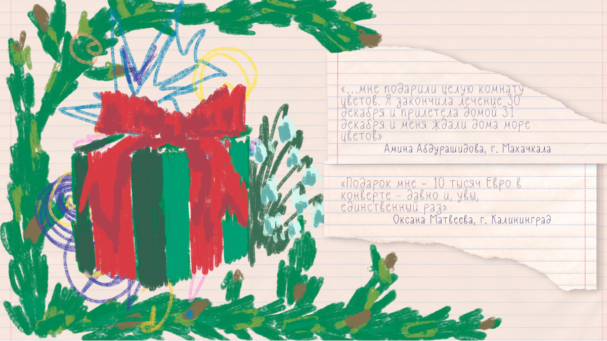С возрастом масштабы меняются, но чудо остается. Интервьюер Оксана Матвеева (г. Калининград) вспоминает, как однажды получила в подарок конверт с 10 тысячами евро. А интервьюер Амина Абдурашидова (г. Махачкала) — как после тяжелого лечения ее дома ждала «целая комната цветов».