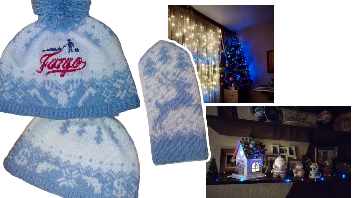 Новогодние поделки в доме Ирины Бибер: волшебный домик и Fargo-шапка с варежками